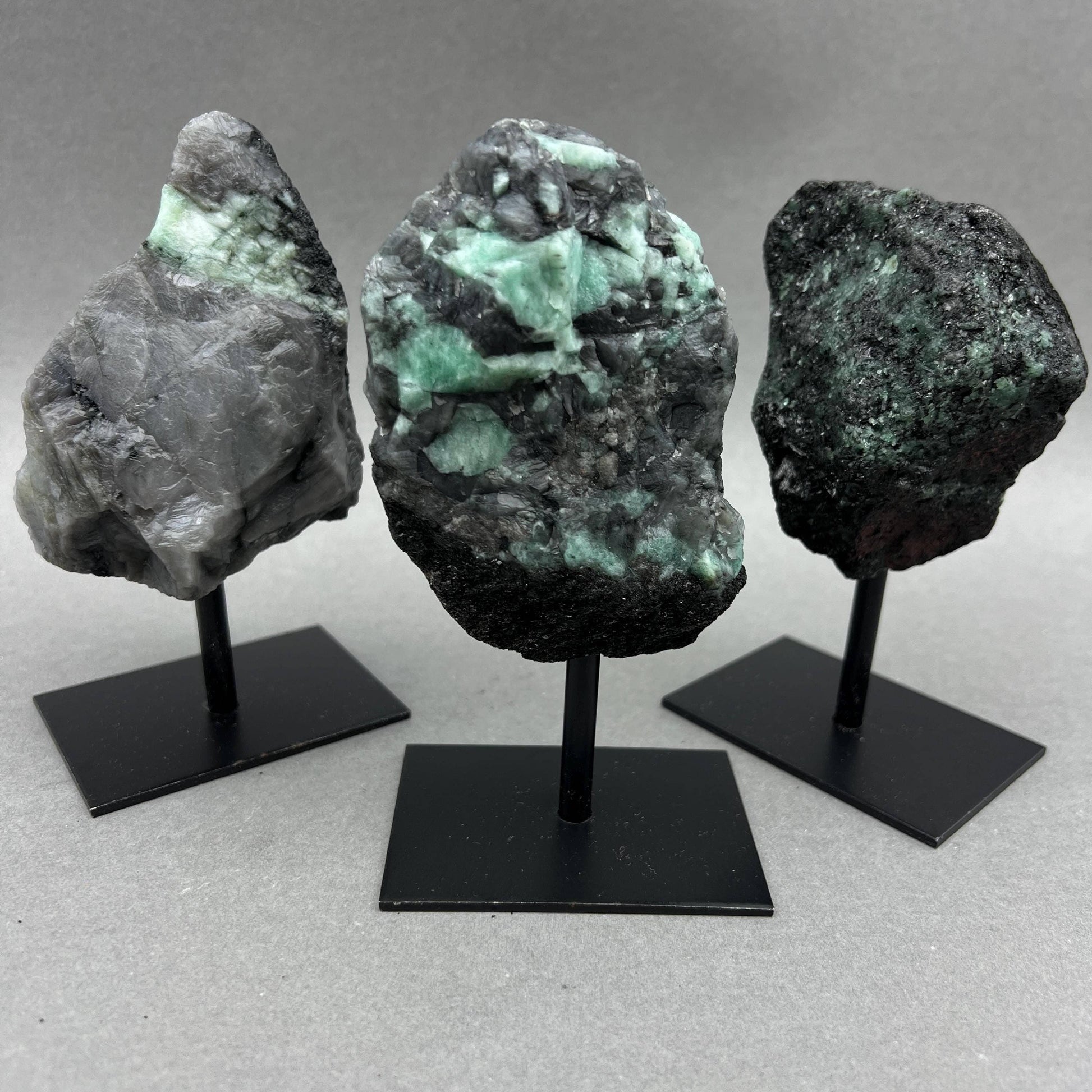 Emerald Rough Specimen on Metal Stand Gemstone Home Decor Wholesale Crystal Supply
