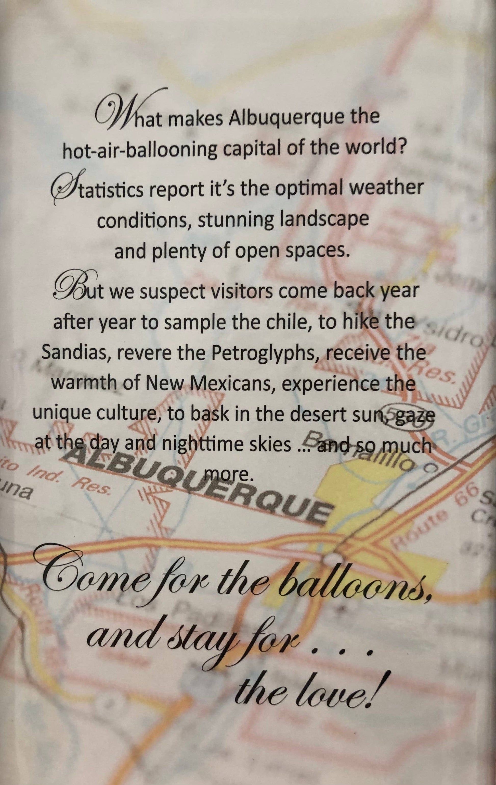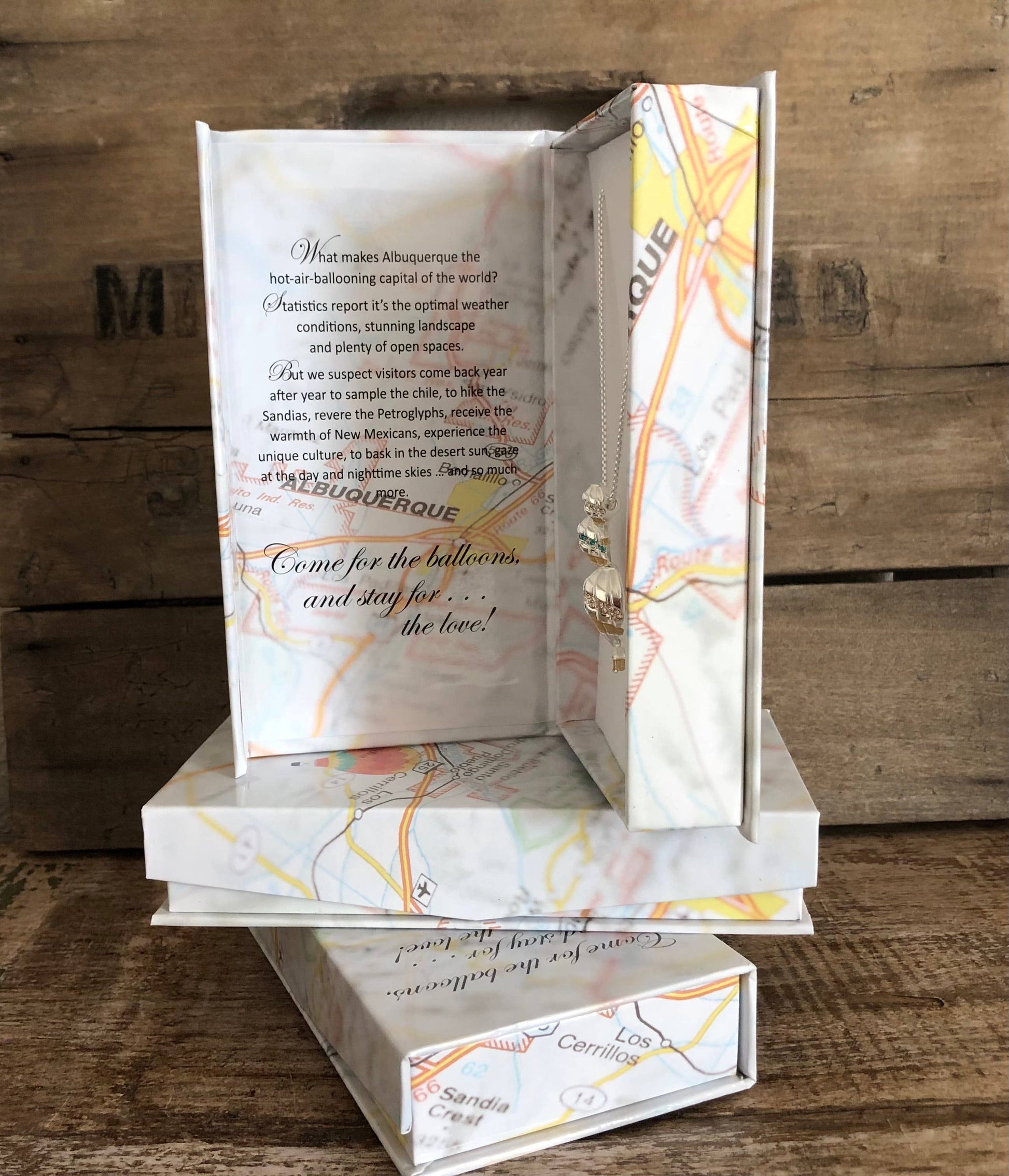 The beautiful, keepsake box has graphics and a verse paying homage to the hot air ballooning capital, Albuquerque, New Mexico.