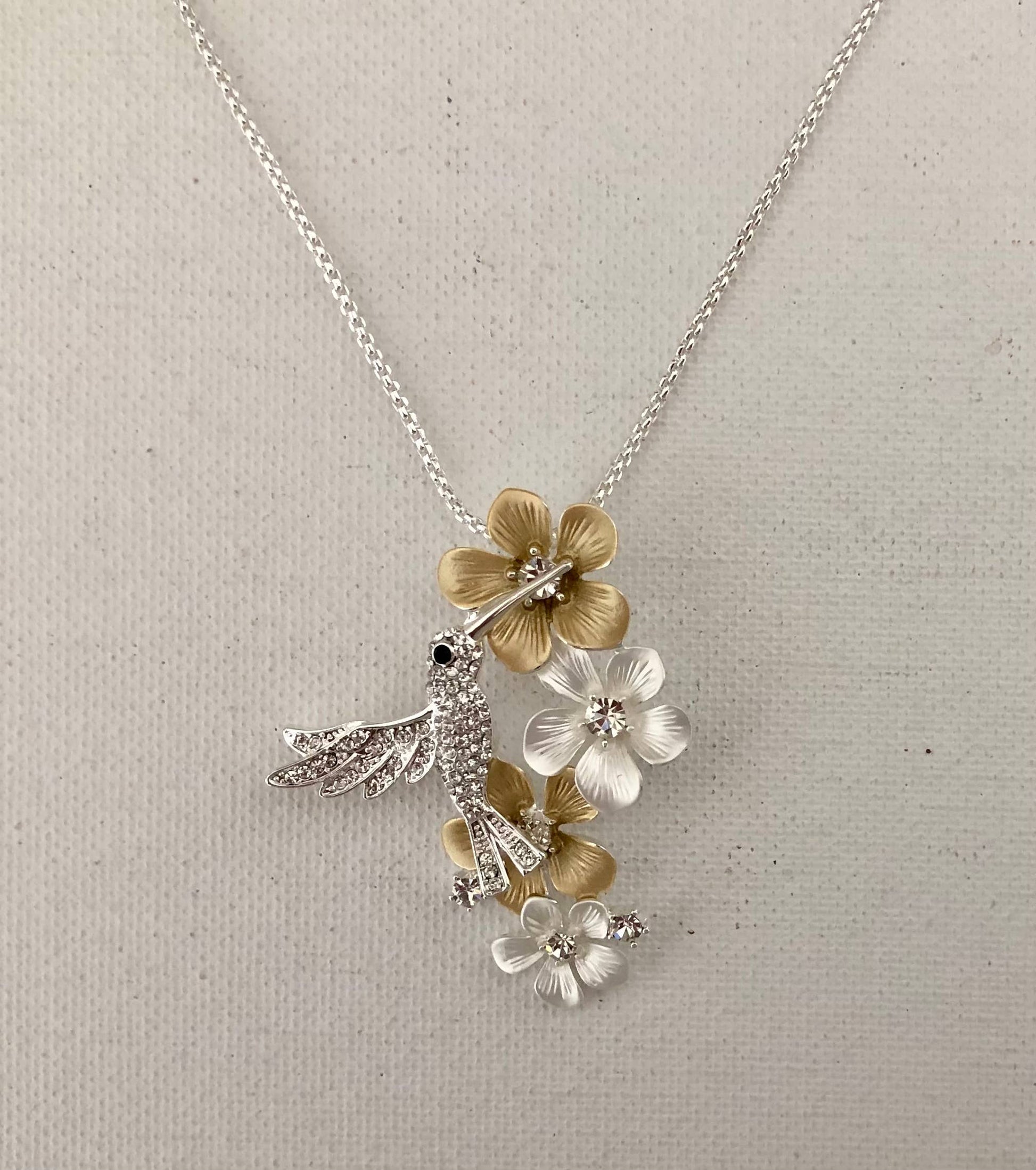 It's blingy and flashy, yet elegant and classy. A bunch of flowers, being visited by a sparkly hummingbird. My pictures do not do this piece justice, it's simply spectacular.