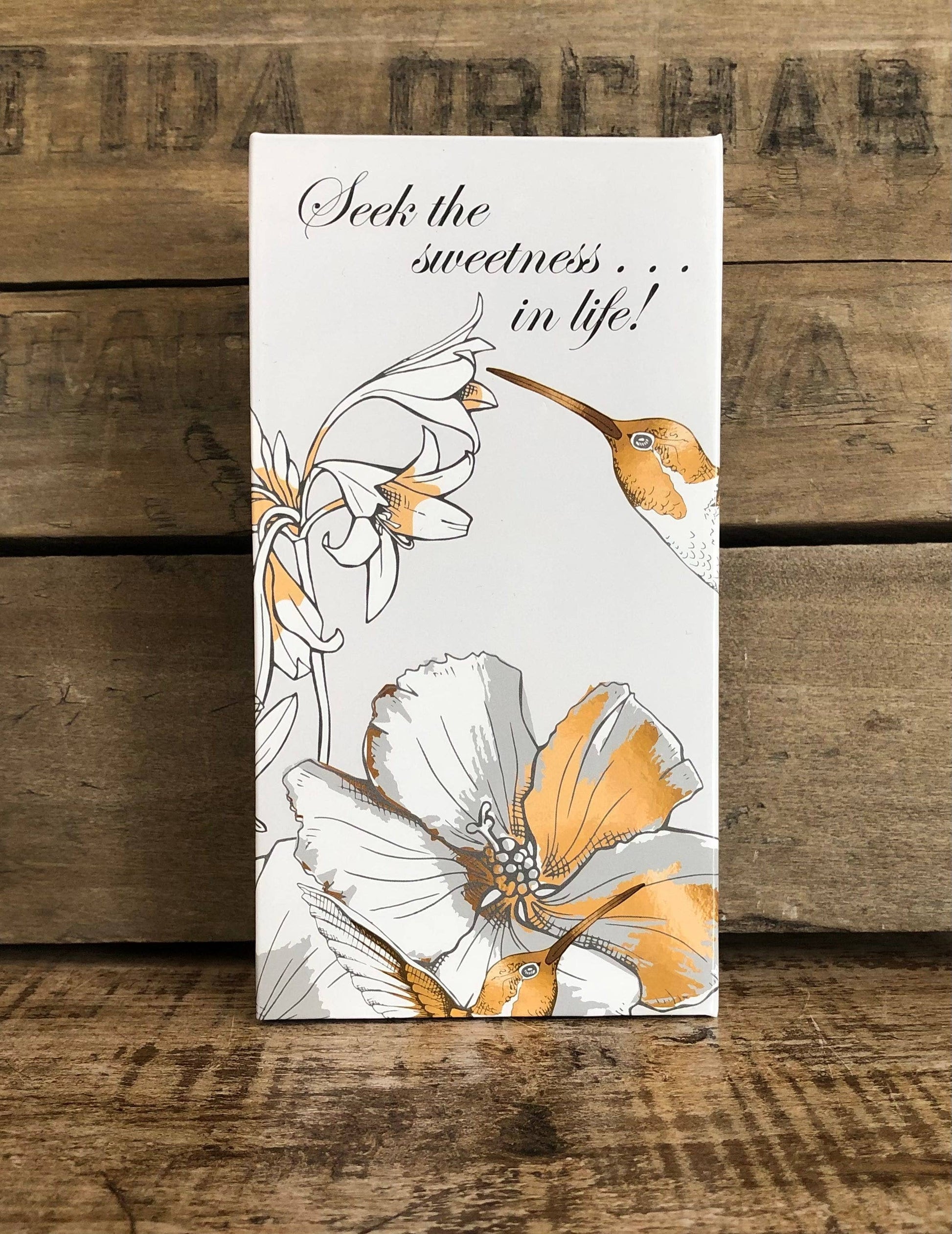Beautifully packaged in a box with a inspirational message with the tag line being, "Seek the sweetness in life".
