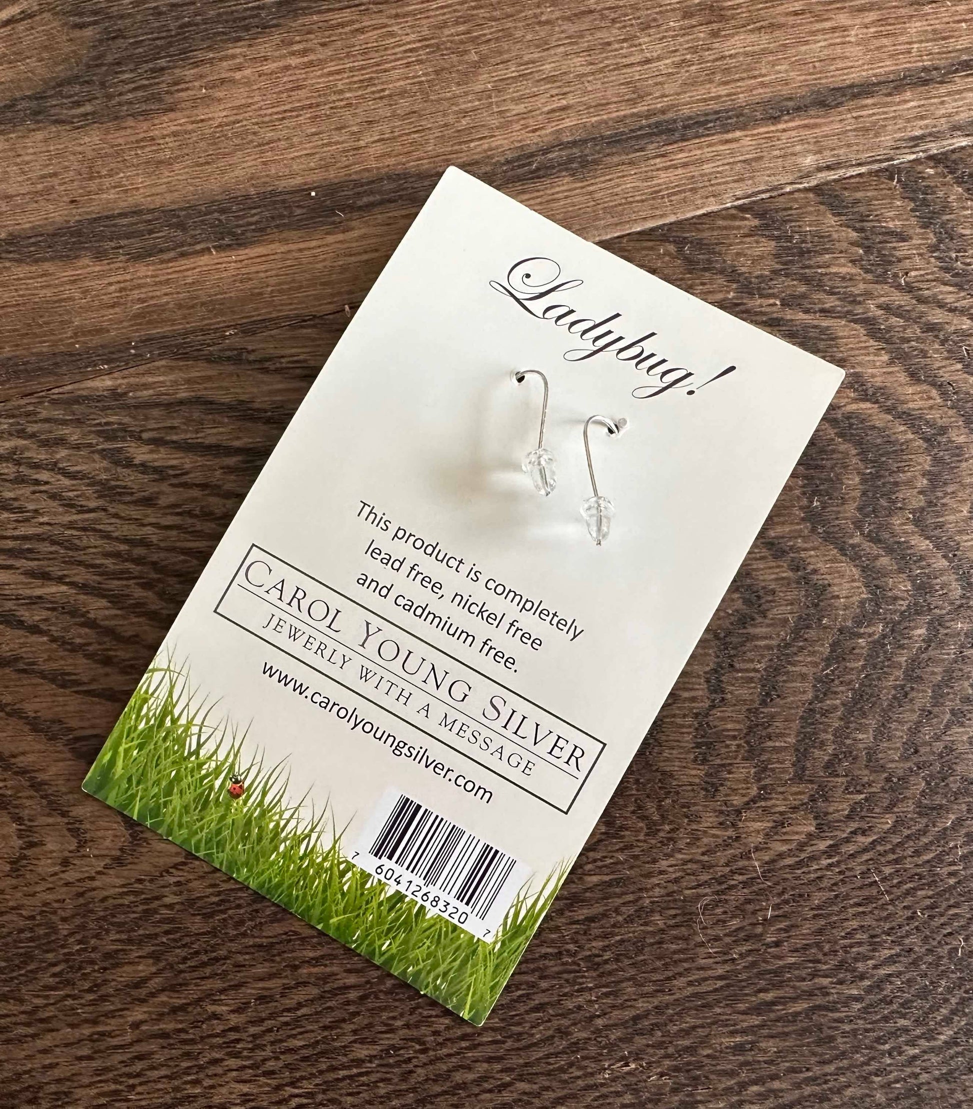 Ladybug on Leaf Earrings / Drop Wire on CARD Jewelry