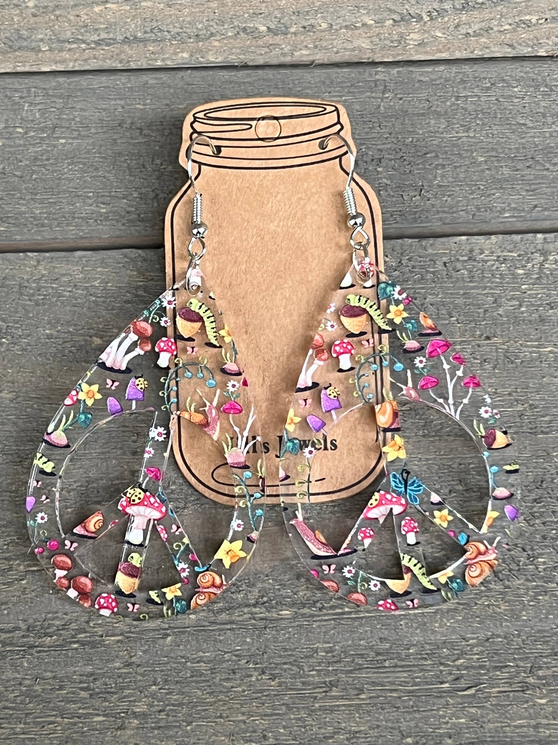 Peace Sign Mushroom Boho Teardrop Acrylic Earrings