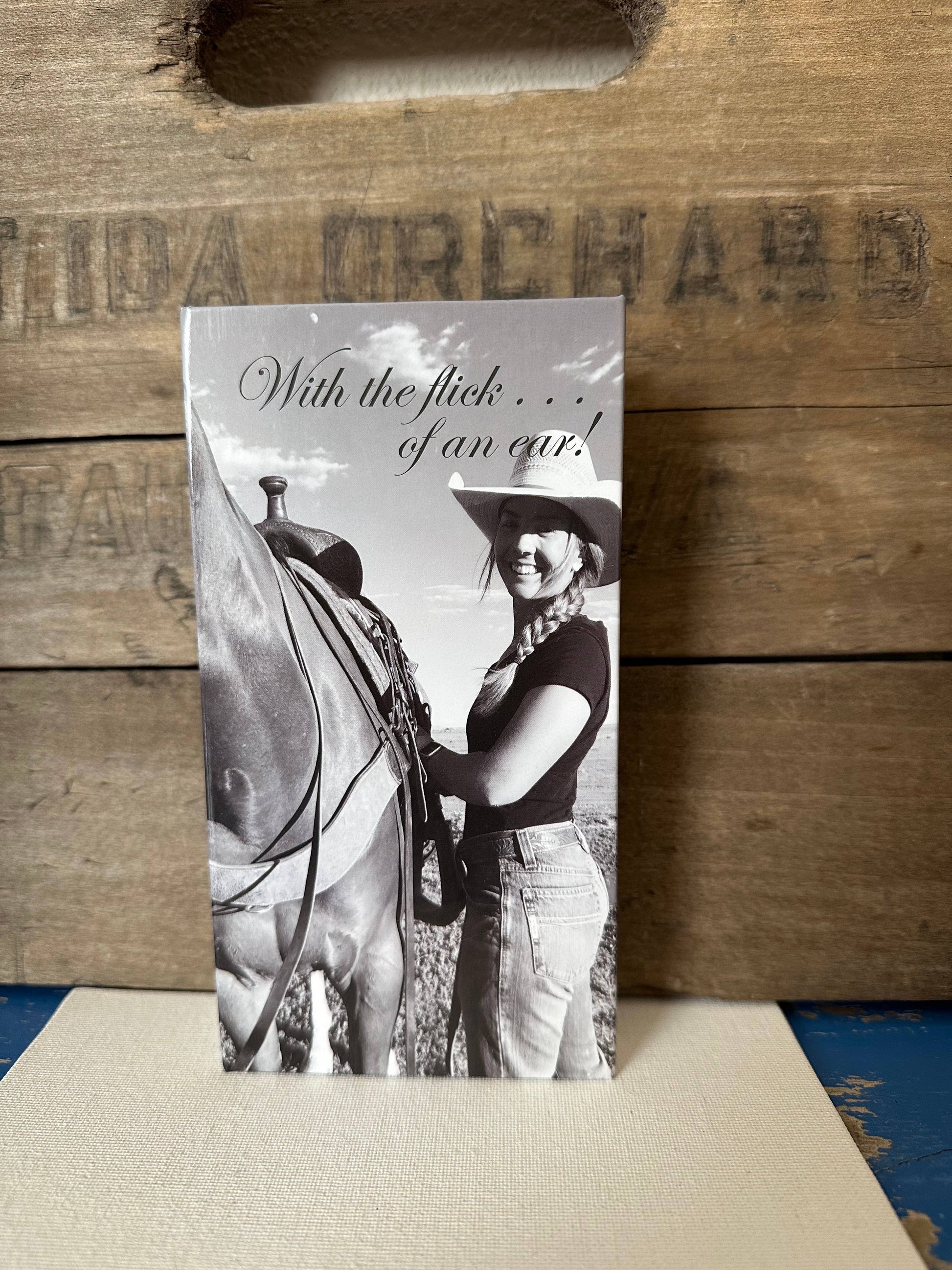 The beautiful, keepsake box opens up to display a verse with the tagline, “With the flick . . . of an ear”.